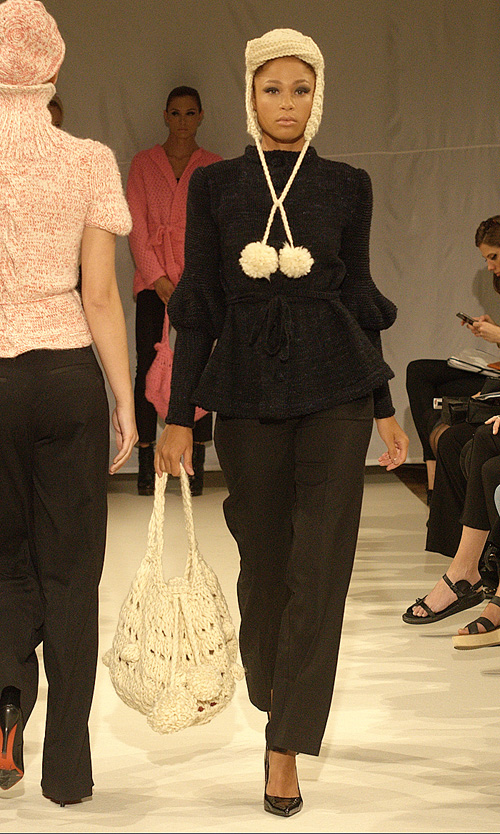 Strick und umwerfende Raffungen an den Ärmeln sowie eine kuschelige Kopfbedeckung bei Voluptuous Morality. © Peter Hakansson